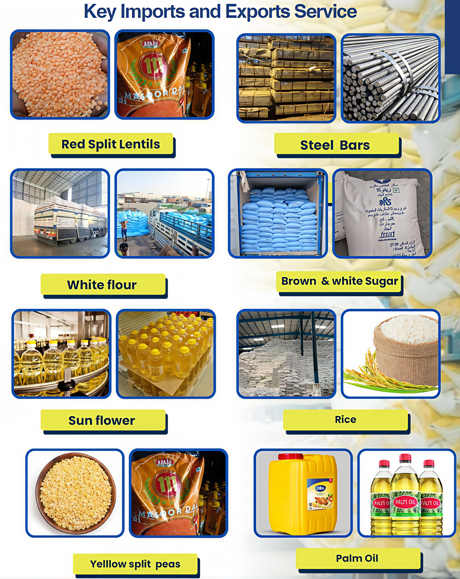 5. Pois cassés jaunes – 30 FCL/mois : Constamment fournis pour répondre aux besoins nutritionnels et du marché.